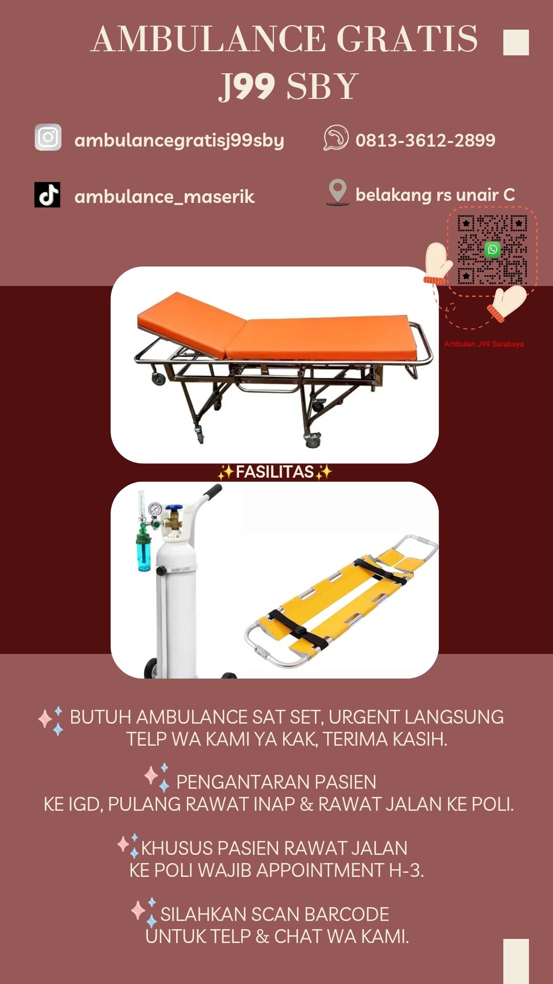 ☎️ 0813-3612-2899 [ Khusus untuk Ambulan Gratis J99 area Surabaya. Silakan telp atau WhatsApp ke nomor ini ya, Kak. Terima kasih 😊 ]